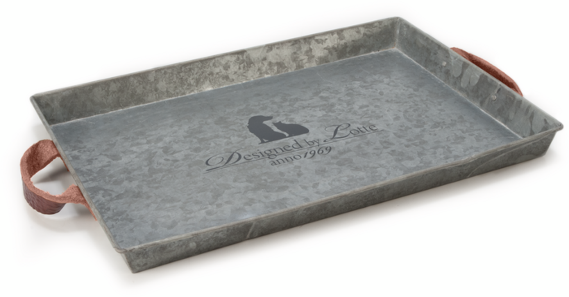 Che si utilizzi come vassoio da portata, come base per ciotole di cibo e acqua o semplicemente come elemento decorativo, questo vassoio si distingue sempre per il suo aspetto elegante. Il robusto zinco e le maniglie in pelle gli conferiscono un fascino rustico e autentico, portando un tocco di stile country nella tua casa.