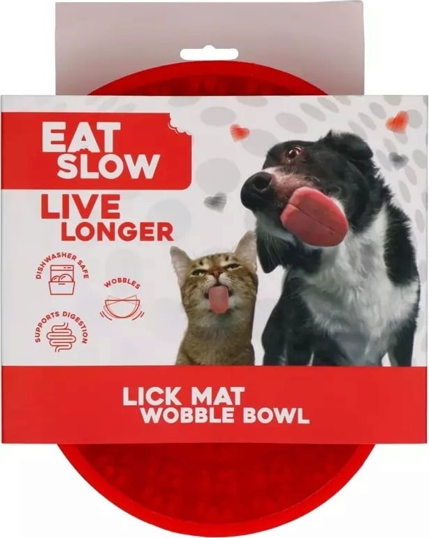 Eat Slow Live Longer - Tappetino da Leccare Wobble Bowl, Rosso