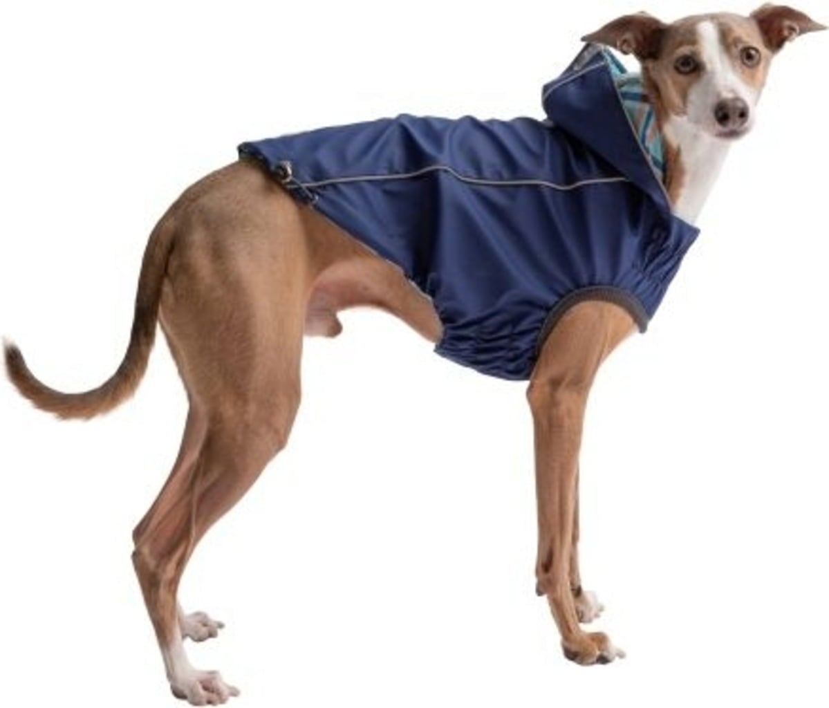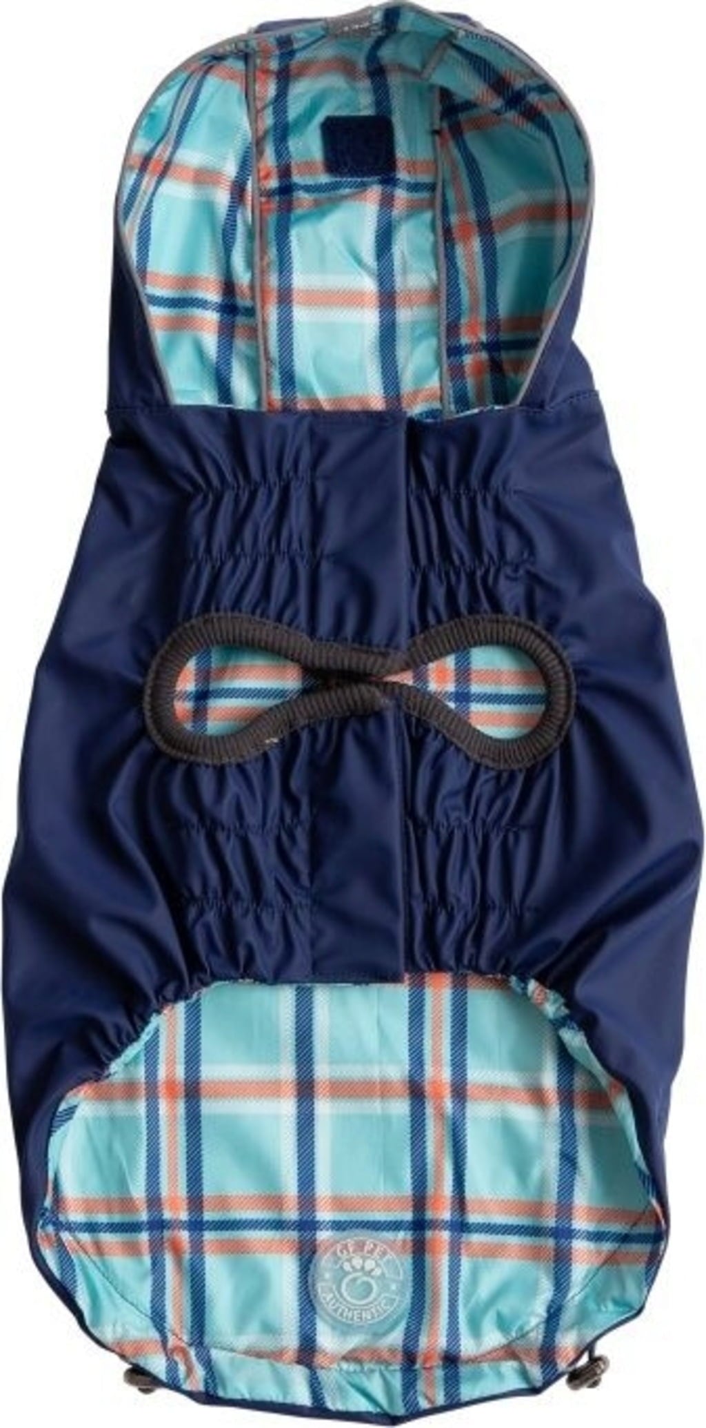Questo adorabile impermeabile rende le passeggiate sotto la pioggia ancora più divertenti! L'innovativa tecnologia ELASTO-FIT® garantisce una vestibilità perfetta e antiscivolo, proteggendo al meglio il tuo amico a 4 zampe dall'acqua e garantendogli al contempo ampia libertà di movimento. Il fantastico design reversibile, con il classico blu scuro all'esterno e un'elegante fantasia scozzese all'interno, rende questo impermeabile un must, portando un tocco di colore alle giornate grigie e piovose. giornate di pioggia.