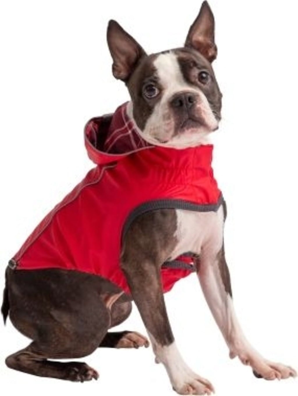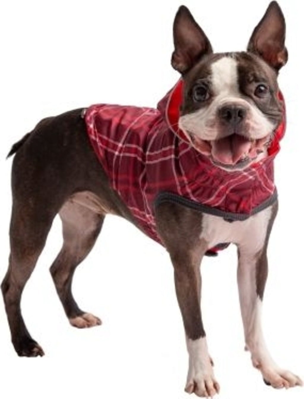 Questo adorabile impermeabile rende le passeggiate sotto la pioggia ancora più divertenti! L'innovativa tecnologia ELASTO-FIT® garantisce una vestibilità perfetta e antiscivolo, proteggendo al meglio il tuo amico a 4 zampe dall'acqua e garantendogli al contempo ampia libertà di movimento. Il fantastico design reversibile, con un esterno rosso acceso e un interno a quadri alla moda, rende questo impermeabile un must, portando un tocco di colore alle giornate grigie e piovose.