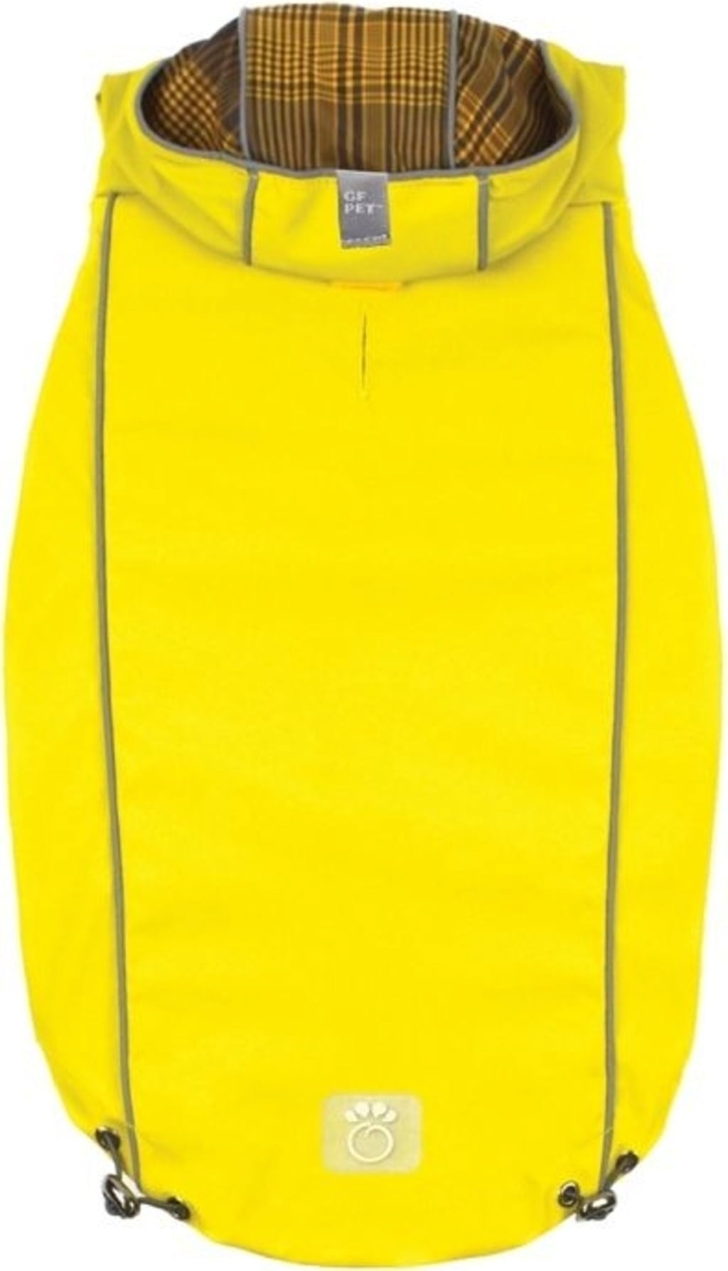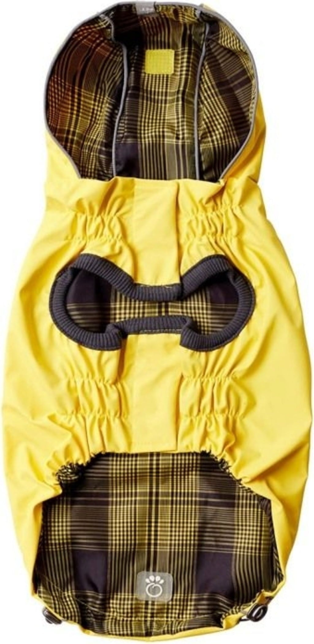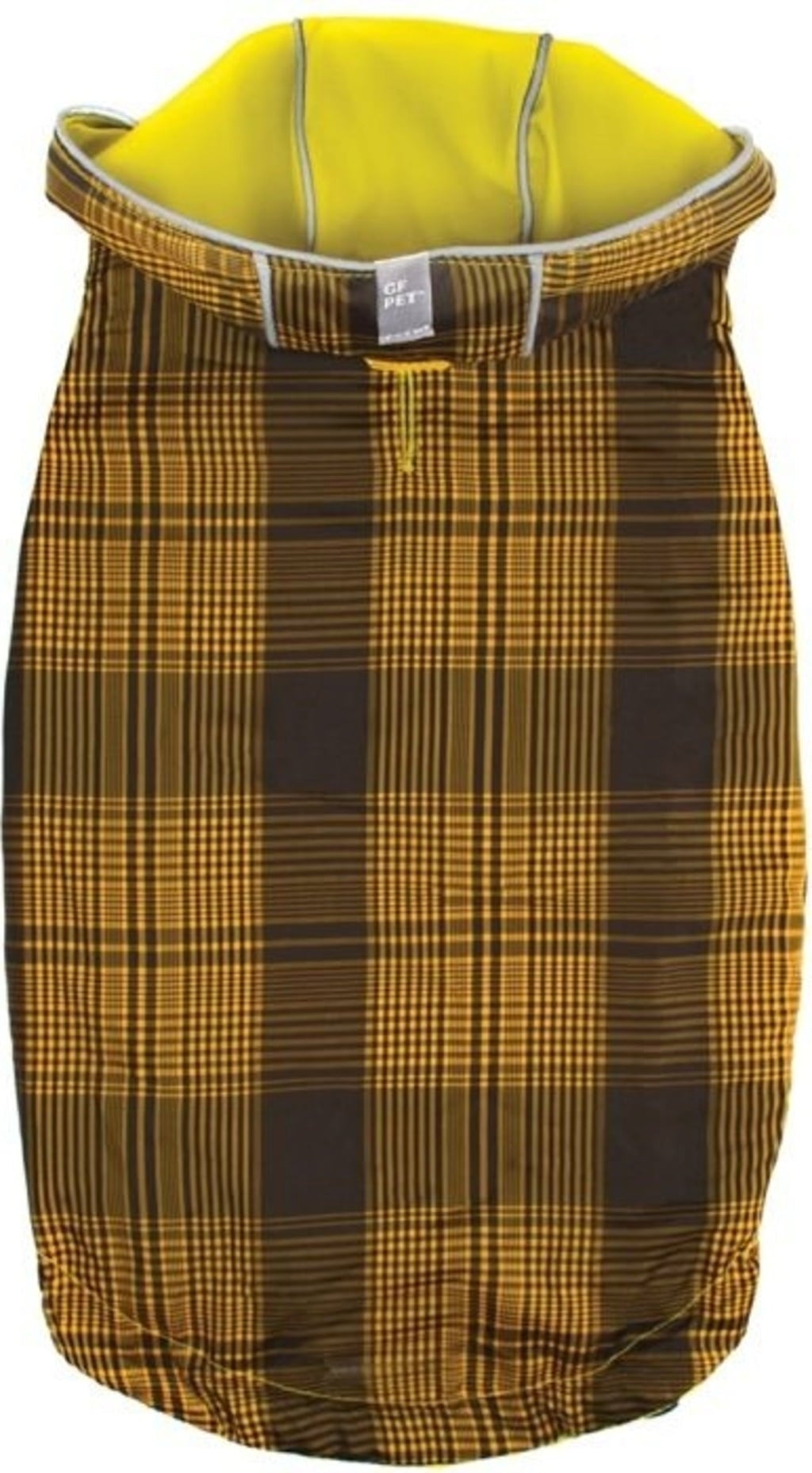 - Può essere indossato in modo reversibile: un lato giallo brillante, un lato a quadri alla moda