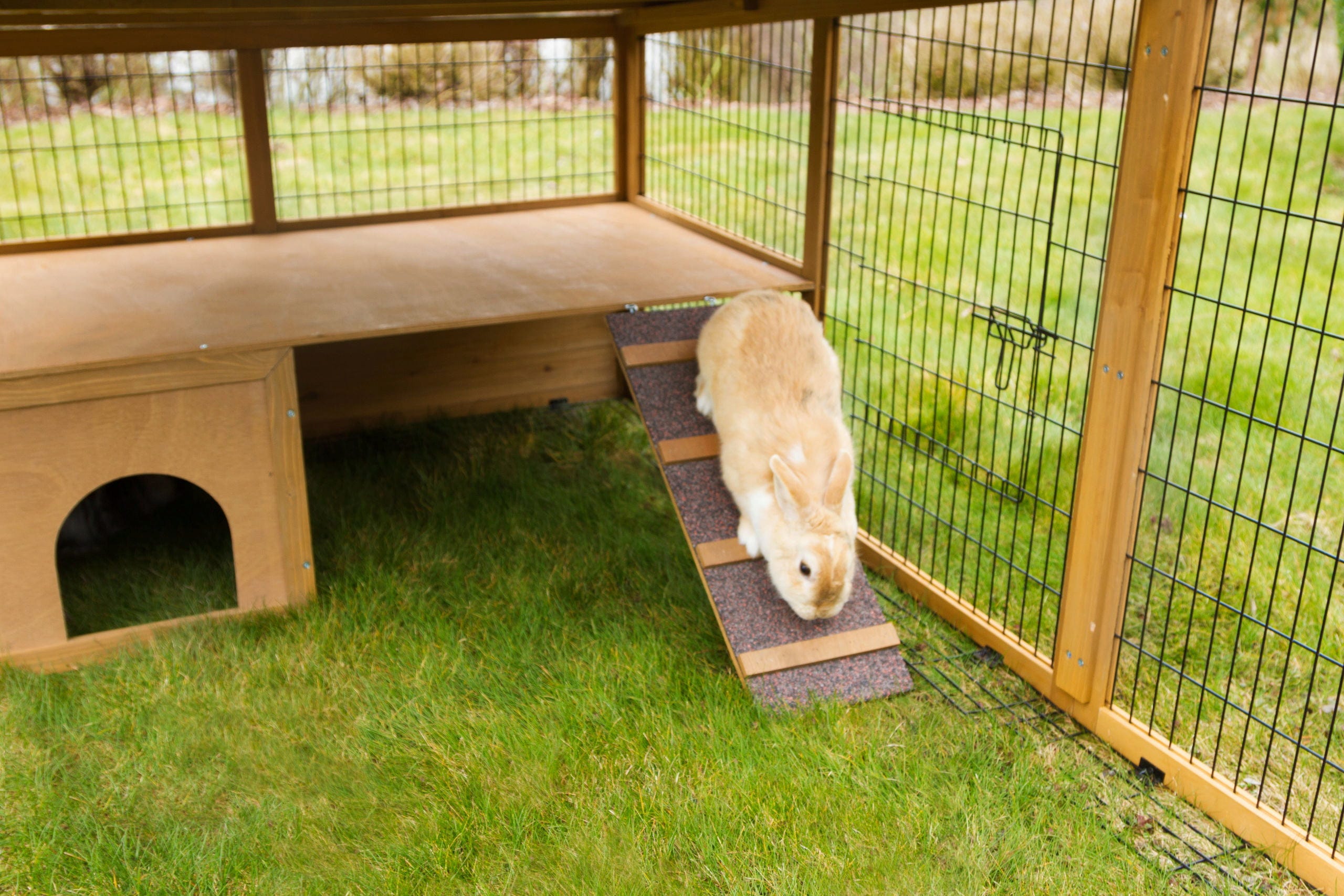 Questo recinto di alta qualità offre ai tuoi animali uno spazio esterno sicuro e confortevole. La combinazione di materiali robusti e dettagli ben studiati lo rende un rifugio ideale per piccoli animali.