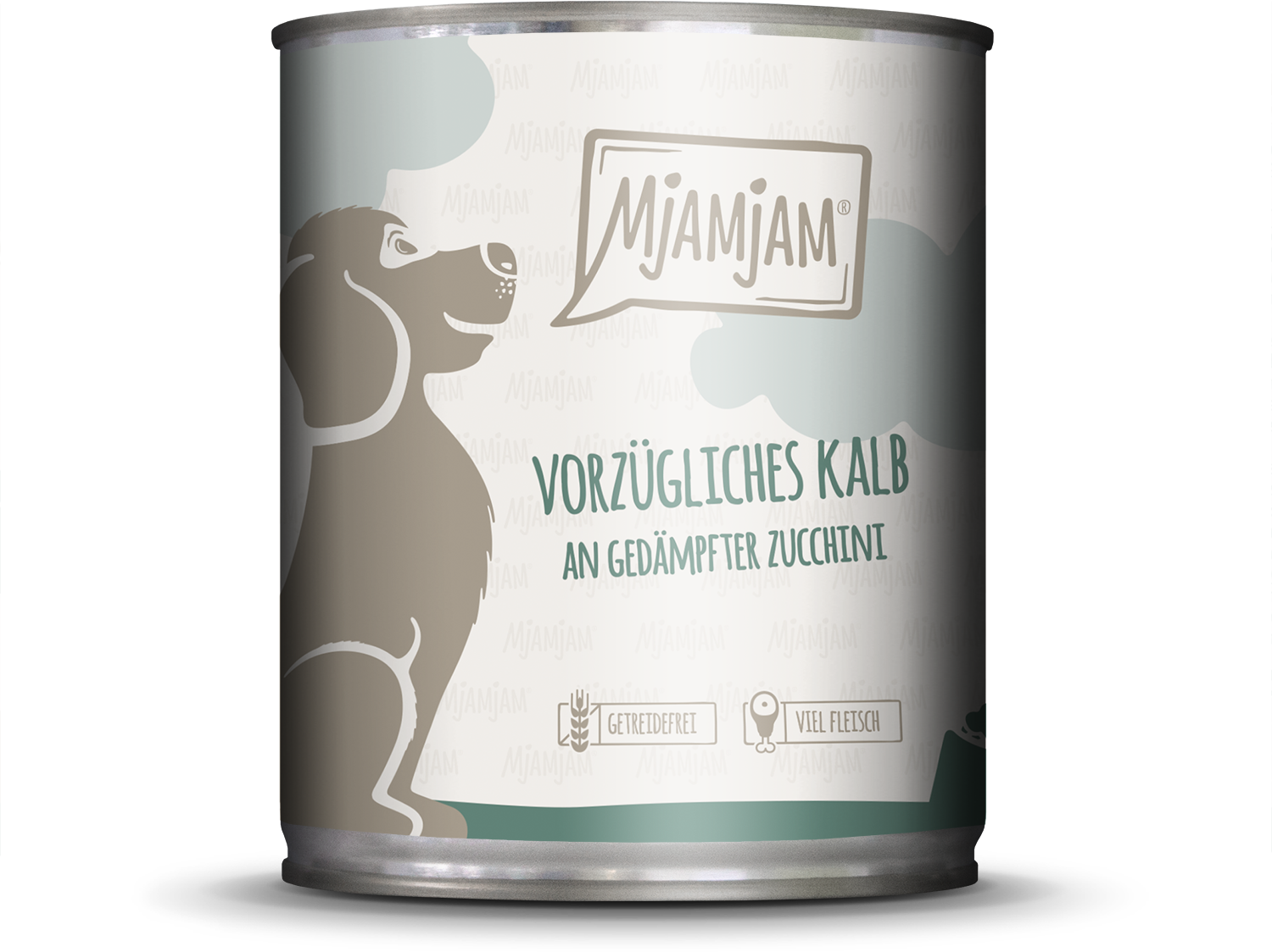 Il cibo umido di Mjamjam coccola il tuo cane con un gusto ricco, una qualità incomparabile e un pizzico d'amore. Il tuo amico a quattro zampe può aspettarsi un pasto sano a base di carne di vitello fresca e zucchine al vapore. La ricetta contiene tutto ciò di cui hai bisogno affinché al tuo cane non manchi nulla.