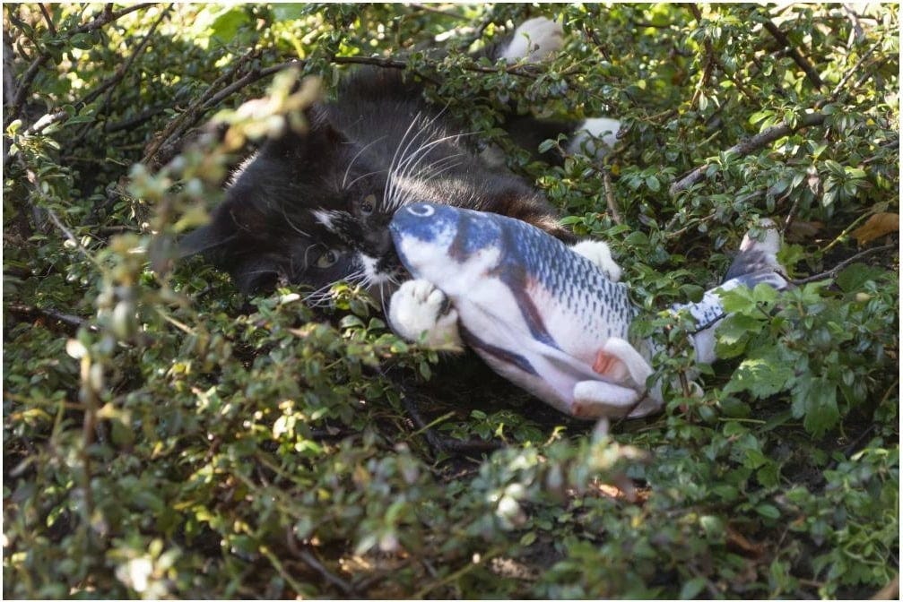 I gatti adorano i pesci, soprattutto quando si dimenano giocosamente come questo! Con i suoi movimenti realistici, questo pesce assomiglia ai suoi simili naturali nel mare e catturerà sicuramente l'attenzione di qualsiasi amico felino. Stimola il naturale istinto di caccia del tuo gatto e offre un intrattenimento particolarmente emozionante per i gatti domestici giocosi. Il ripieno di erba pazza è la ciliegina sulla torta, rendendo questo pesce assolutamente irresistibile.