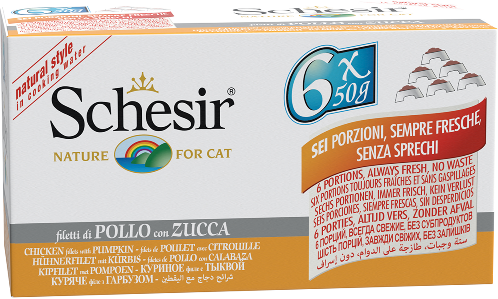 Schesir Confezione Multipla di Cibo Umido al Naturale - 6 x 50 g, Pollo con Zucca (300 g)